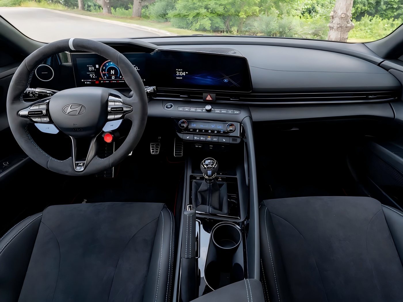 Από την άποψη του εσωτερικού, η συνολική διάταξη του νέου αυτοκινήτου δεν είναι πολύ διαφορετική από εκείνη της Elantra N, αλλά είναι εξοπλισμένο με ένα τιμόνι Alcantara με δείκτη θέσης 12. Εν τω μεταξύ, η πρώτη σειρά είναι εξοπλισμένη με μπλε ζώνες ασφαλείας, οι θύρες της πόρτας είναι εξοπλισμένα με μεταλλικά φρουρούς απόδοσης N και το αυτοκίνητο διαθέτει επίσης χαλιά δαπέδου από την απόδοση, καθώς και μεγάλο αριθμό εσωτερικών κιτ Alcantara. Για παράδειγμα, ο μοχλός χειροκίνητης στάθμευσης, ο μοχλός αλλαγής ταχυτήτων και το υποβραχιόνιο του κιβωτίου ταχυτήτων είναι τυλιγμένα στην Alcantara. Τέλος, υπάρχει ένα λογότυπο "TCR Version" στα φώτα λαβής της πόρτας, το οποίο είναι γεμάτο συναισθηματική έκκληση.
